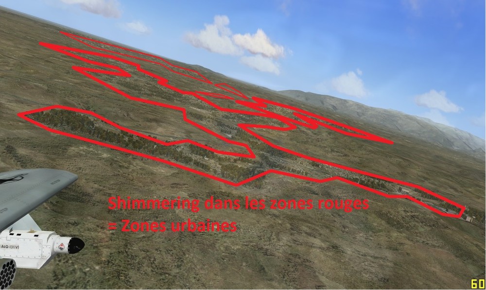 Please have a look at the enclosed picture. I have highlighted shimmering areas (= city textures).
