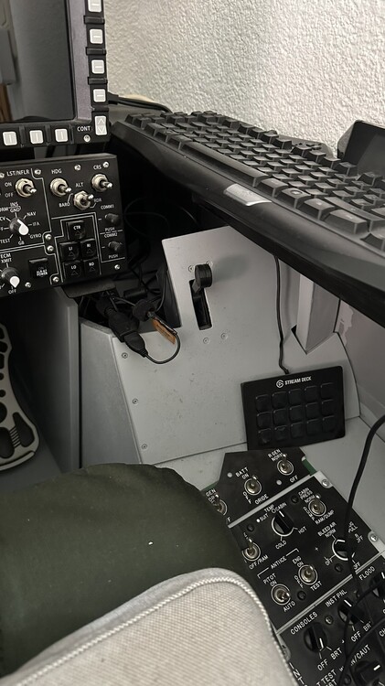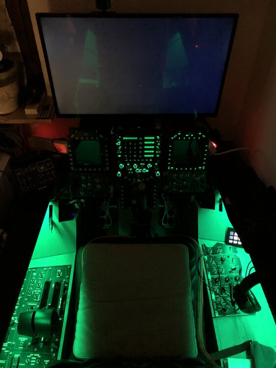 Hallo zusammen, schweren Herzens trenne ich mich von meinem F-18 Pit Projekt... Mir fehlt aktuell die Zeit und Lust und bevor das Ganze hier verstaubt biete ich es zum Verkauf an. Vielleicht findet sich ja jemanden der Interesse daran hat. Das Pit besteht aus 3 Teilen (linke/rechte Konsole und Centerkonsole) und benötigt eine Standfläche von ~1,55 x 1,10 m. Als Hardware ist dabei: - WinWing Super Taurus/Super Libra HOTAS mit Mount (https://winwingsim.com/view/goods-details.html?id=383) - Tekcreations F-18 Hornet Right Panel (V1 - https://tekcreations.space/product/f18-hornet-replica-right-control-panel/) - sowie Landing Gear Lever und ein Hook Lever. Die Seitenkonsolen sind RGB beleuchtet. Ein Anschluss an das Panel hatte ich vor, aber nicht umgesetzt. Von PC Flights und Tekcreations habe ich noch ein paar neue Panels für dieses Projekt (Bilder kann ich bei Bedarf nachliefern). 2 passende Ejection Seat Aufkleber sind ebenfalls dabei. Der Sitz ist ein Speedmaster Flight (V1). Zum Schluss kommt immer der schwierigste Part... Der Preis... Ich setz mal 1700.- auf VB an. Man kann darüber noch reden. Aufgrund der Größe ist ein Versand nicht möglich. Abholung wäre in B-W 74357. Bei Bedarf/Interesse, beide sind relativ neuwertig, habe ich noch MFG Crosswinds und ein TM Warthog im Auftrag anzubieten. P.S. die restliche Hardware (center) welche auf den Bildern zu sehen ist, steht nicht zum Verkauf!
