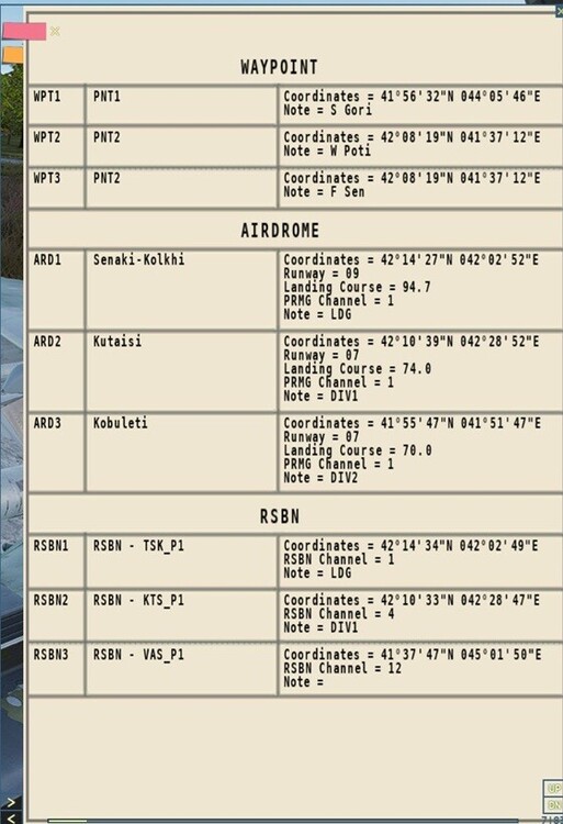 Hello guys! I noticed the PRMG channel indicated on the kneeboard for all runways I've selected in the mission editor is wrong(always indicates Ch1) . For the RSBN it's ok, see pics for Senaki