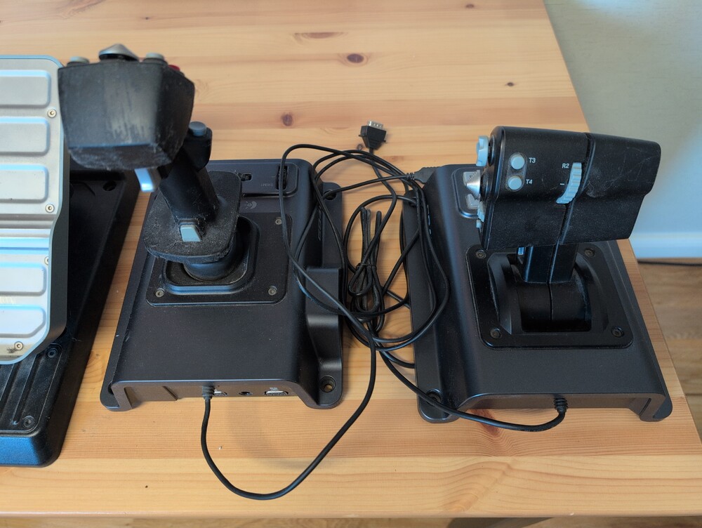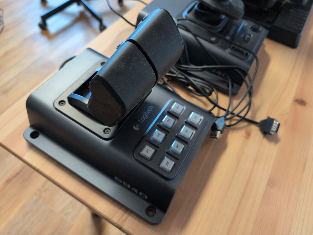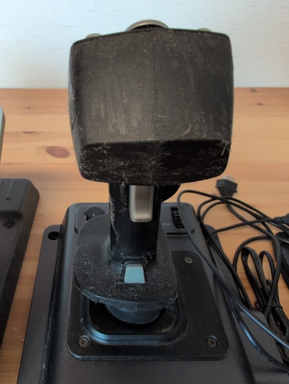 After being my main and trusty setup for many years, I moved on to some new setup. I still think it is a good system, giving the "dead-stick" capability using FFB. Great for helicopter flying. Some notes: G940 Pedals: Rewired to custom Leo Bodnar joystick board, and are connected by USB directly (fixes precision issues from original controller) G940 Stick: Due to its age, the plastic softeners dissolve. This gives a sticky feel to the grip. I removed most of it, so it is not sticky anymore, but it still does not look nice (see pictures). Some work might be necessary to remove all of that stuff. The system itself, the FFB, the LEDs, everything works fine It would be a shame to let it collect more dust in the shelf. If someone wants to continue using it, please let me know. I'm willing to sell it for very little money + shipping. Best, Frostregen PS: Located near Hamburg, Germany