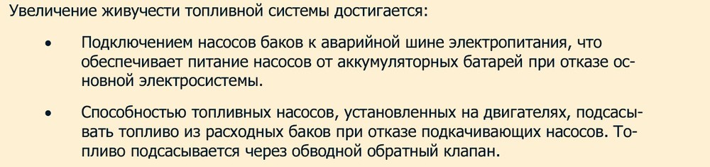 Без полочек, но если я правильно понял и не ошибаюсь, то этого достаточно для ответа на твой вопрос... Во первых:) Но это неважно... А вот: Второй пункт как раз вроде подходит... - Тоесть после прокачки топлива насосами, и успешно запустившись... Далее при отключенных тумблерах подкачивающих насосов, топливо идёт через обводной обратный клапан. Получается так)