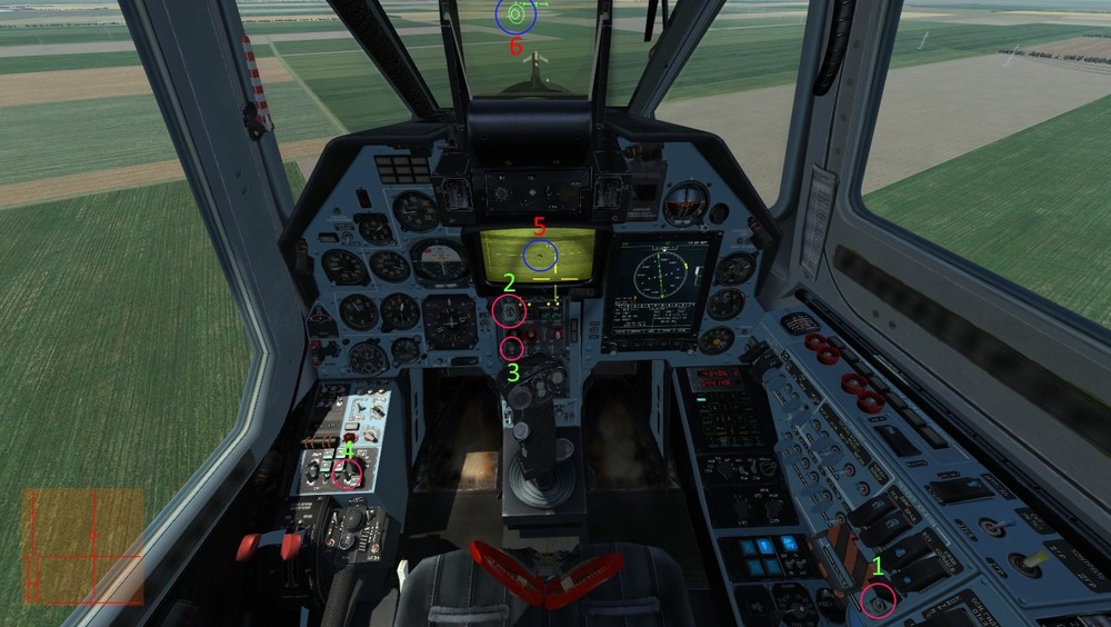 краткий инструкшен собственно вот: [1]СУО-Система Управления Оружием это тумблер питания(alt+shift+D)-верхнее положение [2]ПУИ Главный выключатель СУО(alt+W)- верхнее положение [3]ПУИ Переключатель режима СУО(A)-верхнее положение - "Ручное" - разрешающее пуск с более дальнего расстояния - нижнее положение - "Автомат" - пуск можно будет произвести только после достижения максимально разрешенной дальности пуска по первой полоске на прицельном кольце от птур на илс [4]Лазерный Дальномер (Rshift+O)-верхнее положение [5]шквал включение кнопкой (O) , выбор внешних подвесок "для птур"(Y), а далее: поиск, наведение, захват(Enter) [6]совмещение прицельных марок и Пуск! Пуск! Удержанием около секунды Ralt-Space а вот вид панели СУО когда не включен тумблер питания который под цифрой [1] а всё остальное активно
