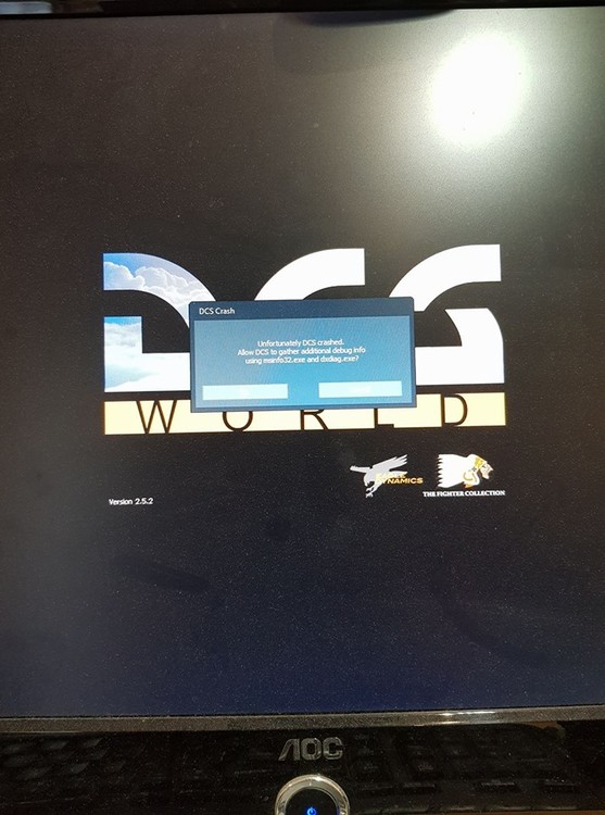 Hi all, whenever I try to load the Persian gulf map DCS crashes, showing this error message. I've tried to fly the M2000c and the Harrier, the harrier flew for a minute but then crashed, the M2000c crashed during the loading sequence after I hit fly. I've attached one of the crash logs as well. Any ideas? dcs.log-20180523-150430.zip