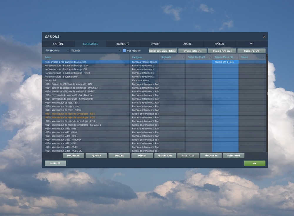 Man Thanks LeCuvier, your code did the trick. As you can see on my home made Warthog throttle addon I use a 5V Pro Mico mini-Leonardo board with 3 state switch (up/middle/down) at each state the board send a dX function (dx1 -->dx31). I did use your base code for the HUD day/night switch using the 3006 code instead of 3004. By the way where can I foud theses cods for the switches? Many Thanks Bestr Regards Rem27