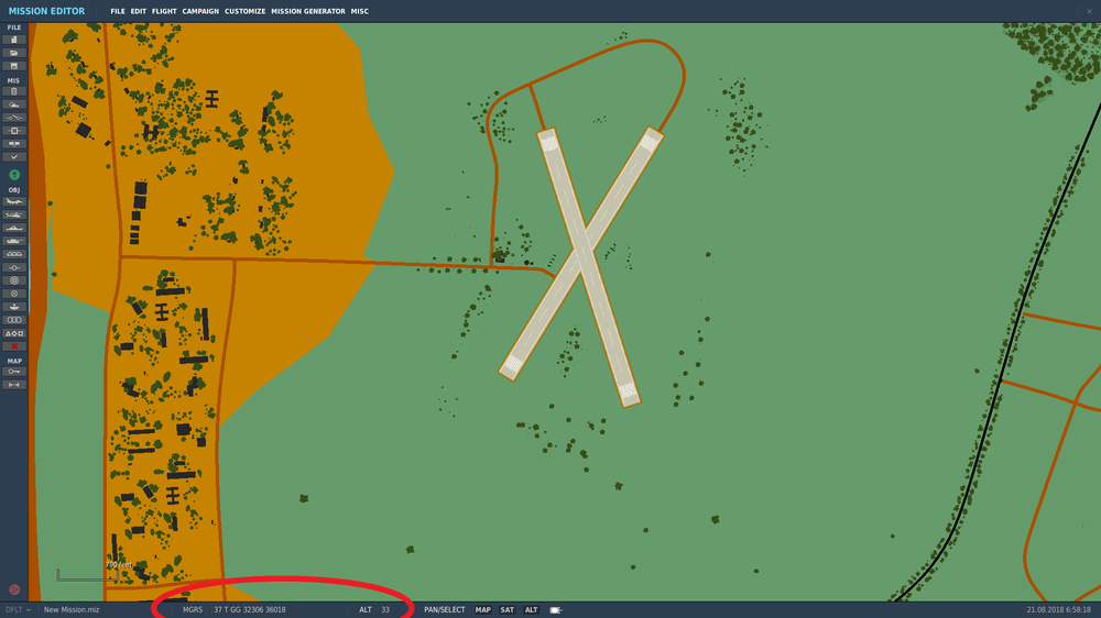 I didn't know that was possible Rob but that sounds great -- is there a mapping in DCS that lets you set a toggle like that, or did you have to use a 3rd party solution? In the attached screenshot I had my mouse cursor right over the crossing of the two runways, but the screenshot function masked out the mouse. Regardless, at the bottom you can see the MGRS readout circled in red. I'm not sure how familiar you are with MGRS so hopefully this isn't telling you something you already know, but a six digit grid will get you within 100 meters of a point and is generally plenty close for what we need. So in this case GG 323 360 would be your entry. As I think I mentioned in another thread I have been out of the A10 for a long time, so someone can fix me if I'm wrong, but I believe the entire Caucus map lies on the 37 T map sheet so you don't ever have to use those letters and numbers, just the two letter grid identifier than the string of numbers.