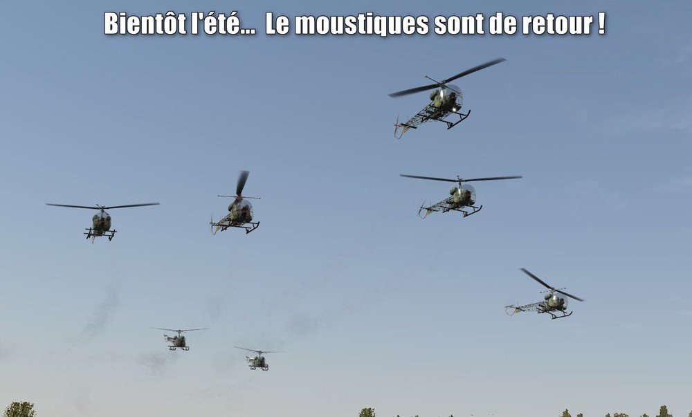 12. Voici l'adresse d'un site sur lequel quelques passionnés (surtout d'hélico), dont je fais partie, nous nous donnons rendez-vous presque tous les soirs, vers 21h00. Nous utilisons le teamSpeak du site pour communiquer et organiser des vols ouverts à tous. Venez jouer avec nous et partager un bon moment, quel que soit votre niveau ou votre âge. C'est très simple : inscrivez vous sur le site et récupérez le mot de passe teamSpeak pour nous rejoindre ! Adresse du site EVAC (Ecole d'Aviation Virtuelle de Chasse) : http://www.evac-fr.net/