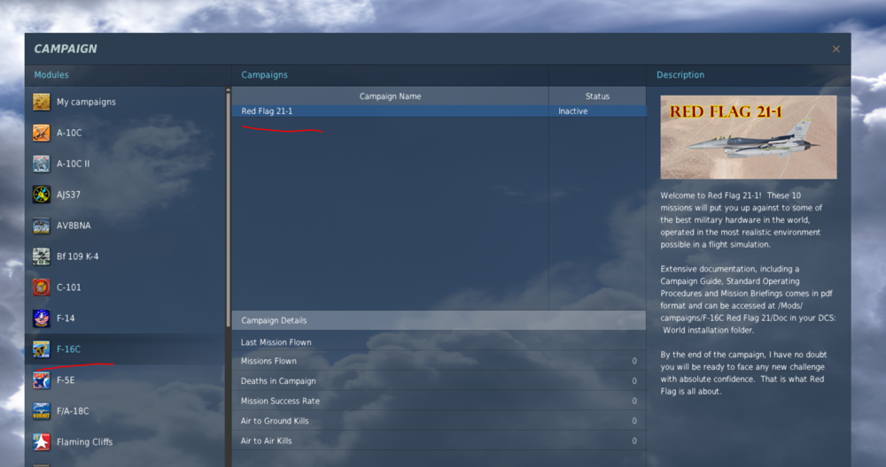 I'm in love with this campaign. I have a minor bug to report though. Since 2.1 when I try to close the flight (quit) the script fails and throws an error instead of the " do you want to save the progress" cli thing. Anyone the wiser how to fix it? Well, this is what happens when you don't read. Straight from the readme.txt: "Open the file "DCS World 2 OpenAlpha\Scripts\MissionScripting.lua". Add two minus signs in front of line 16 "sanitizeModule('os')" and line 17 "sanitizeModule('io')". The code block from line 16 to line 20 should then look like this: --sanitizeModule('os') --sanitizeModule('io') sanitizeModule('lfs') require = nil loadlib = nil This modification has to be repeated after each update of DCS World 2 OpenAlpha, as each update reverts the file back to its original state. " Not gonna try it tonight, although I have a strong feeling this should do it. -