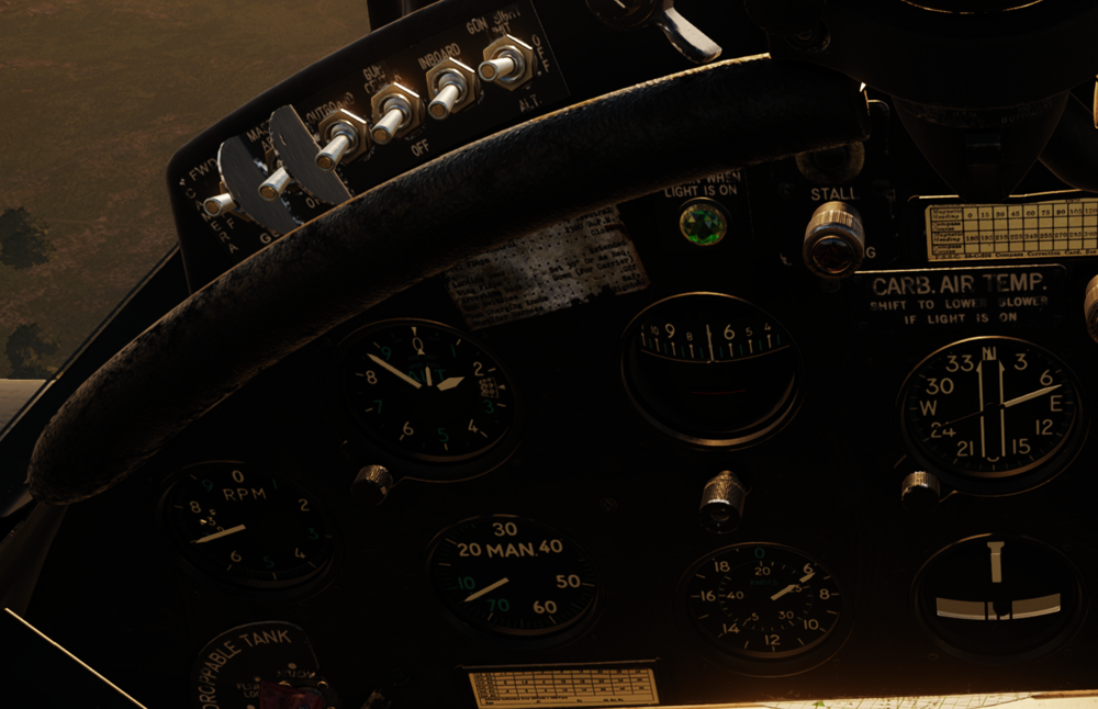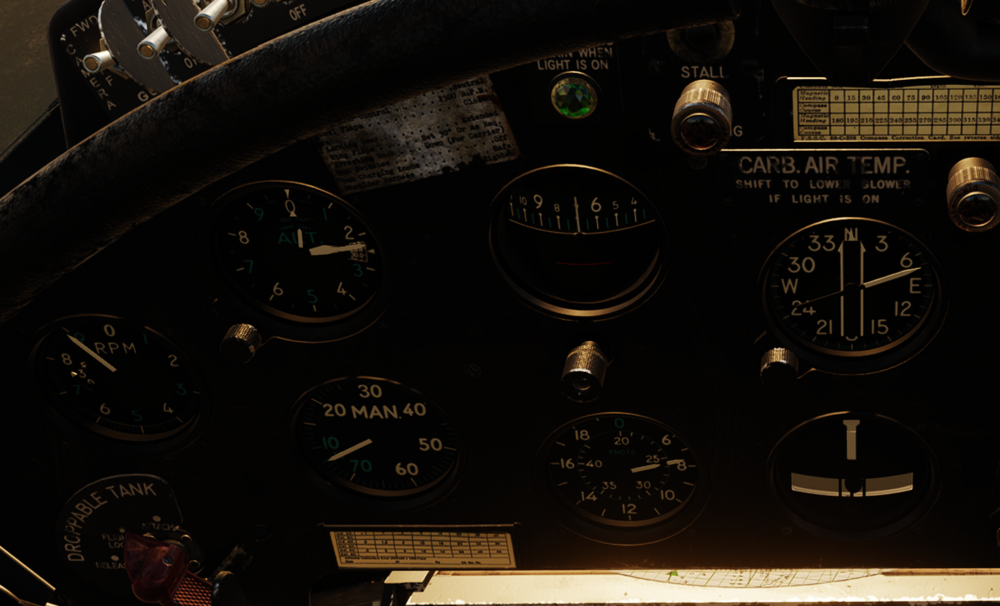 Yes I'm getting to 4200RPM as well with the slider-mouse rev-yank technique... I suspect that's not correct but maybe. I'm not sure if it was designed to never allow that much revs or if they told the pilot "don't do that" or what... like the paddle in the hornet maybe? I don't know but I suspect not. nullThese pics are 3700, 3900 and 4200RPM. Speed is slow because I just took off, trimmed-ish and started yanking the rev lever. In the 4200RPM I included the cyl head temp because as you can see it's already cooking... I mean I don't blame it I had all the intakes closed. null null
