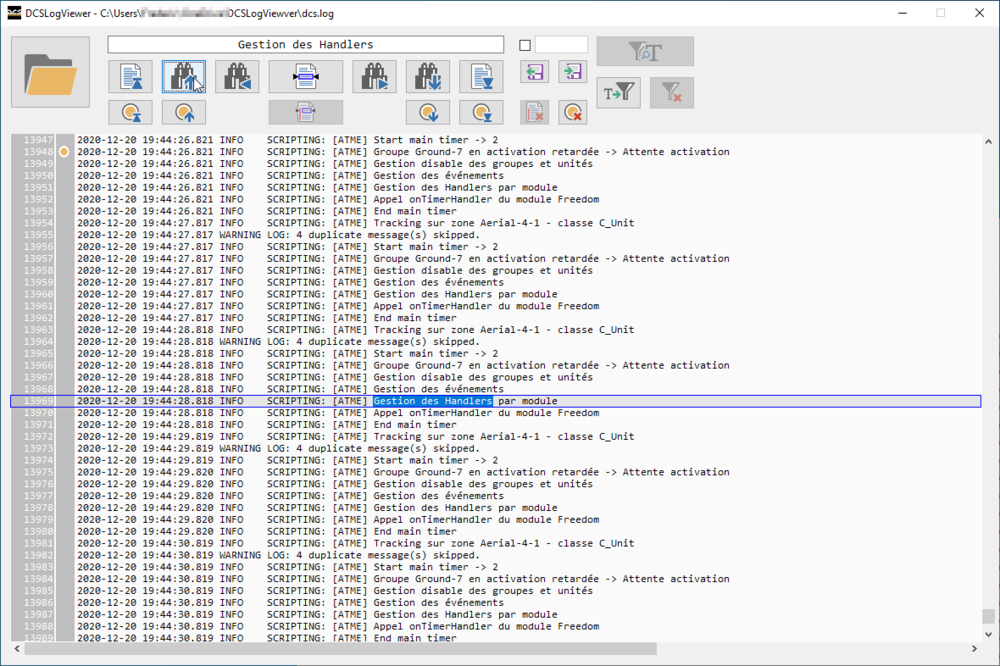 Bonjour à tous, Après une (très) longue période entre boulot et refonte ATME, nous pouvons enfin vous annoncer la nouvelle version dont les tests sur DCS 2.5.6 sont quasiment finalisés. L'arrivée de DCS 2.7 va nous conduire à retester mais s'il n'y a pas de remise en cause profonde (ou bugs) de l'interface lua DCS nous pensons pouvoir publier la version 2.01 d'ATME d'ici fin mai. Il conserve sa polyvalence et notamment le fait de créer des missions opérationnelles en mono et multi joueurs directement. Bien sur, lua doit être connu et maîtrisé pour être efficace. ATME a été retravaillé en profondeur même si la philosophie n'a pas changé, c'est un concept modulaire. Néanmoins, de grosses optimisations ont été faites comme une gestion asynchrone qui évite les saccades sur les grosses missions, une compatibilité avec Combined Arm et bien sur la correction de nombreux bugs. ATME prend en charge les "délais' d'attente obligatoires pour un bon fonctionnement des "scripting functions" de DCS, comme par exemple l'affectation d'une nouvelle route à un groupe. La gestion des spawns d'objets a été revue et bénéficie des dernières possibilités de DCS comme par exemple spawner des statics sur un porte avion. La gestion des embarquements/débarquements de troupes d'infanterie a été notablement améliorée et simplifiée pour l'utilisateur d'ATME, notamment avec la possibilité de charger et décharger automatiquement des troupes sans s'occuper de gérer l'arrêt (ou la pose) de l'unité de transport. Les hélicos (y compris joueurs) voient leurs poids augmenter avec le nombre de personnes embarquées à bord. Cette nouvelle version gère également les "scenery objects", objets des cartes et les armes. ce qui apporte une nouvelle dimension. Les marqueurs sont gérés intégralement. ATME est plus que jamais une couche logicielle (Framework) qui permet de s'affranchir des complexités inhérentes aux "scripting functions". Il permet de créer rapidement des missions complexes. Avec ATME, un logiciel d'affichage de log DCS en temps réel sera également mis en ligne. Ce logiciel nommé DCSLogViewer permet de voir défiler les lignes du logs DCS, de faire des recherches et des filtrages, ou de marquer des lignes de log particulières (voir image jointe, mais susceptible d'évoluer d'ici la publication). Très utile pour ceux qui ne veulent pas se lancer dans l'installation d'un logiciel de debug, il permet rapidement d'identifier les problèmes à partir du log DCS. A bientôt Sunski