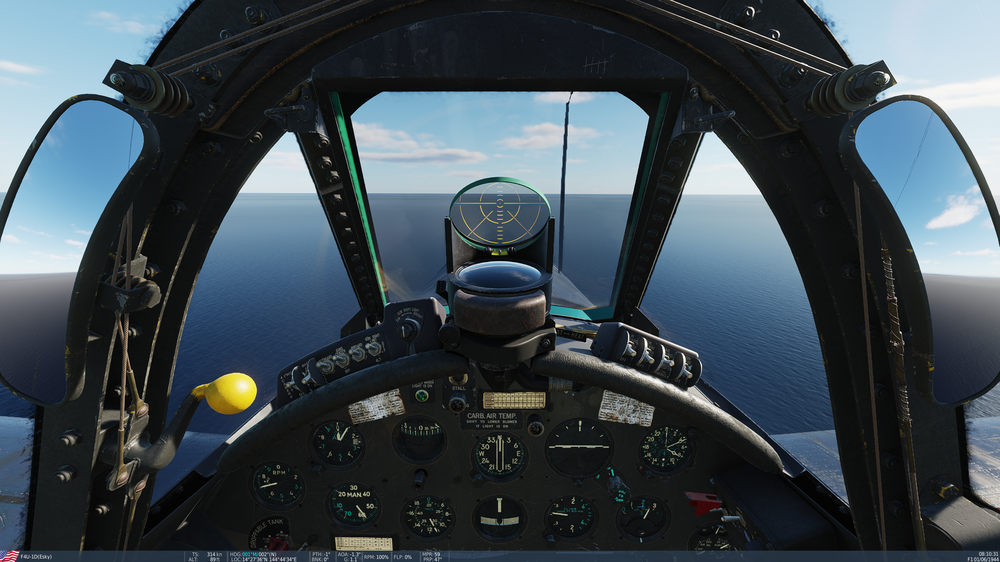Am I doing something wrong? My sea level tests: 50% internal fuel. 56-59 MP, 2700RP, experimenting with fuel mixture. Without water injection, I get 303-304 knots ASL, which translates to 348-350mph or 563kmh. Seems right on the money there, if that chart is correct. With water injection, I get 317 knots ASL, 365 mph or 587kmh. I'm still not sure which fuel mixture works best, and to use when, but the numbers appear close to what they should be. I can take her up to 320 knots in a shallow dive. Why do you think we have such different results? Are your cowls tucked in?