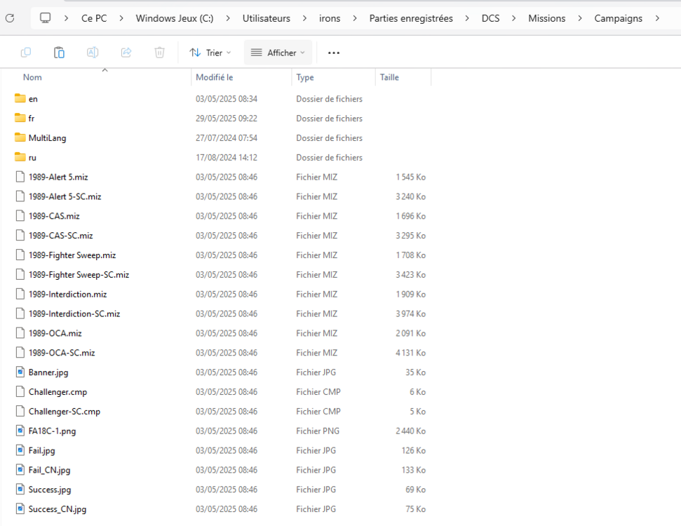 yes, files are in the right folder > C:\Users\irons\Saved Games\DCS\Missions\Campaigns\en -