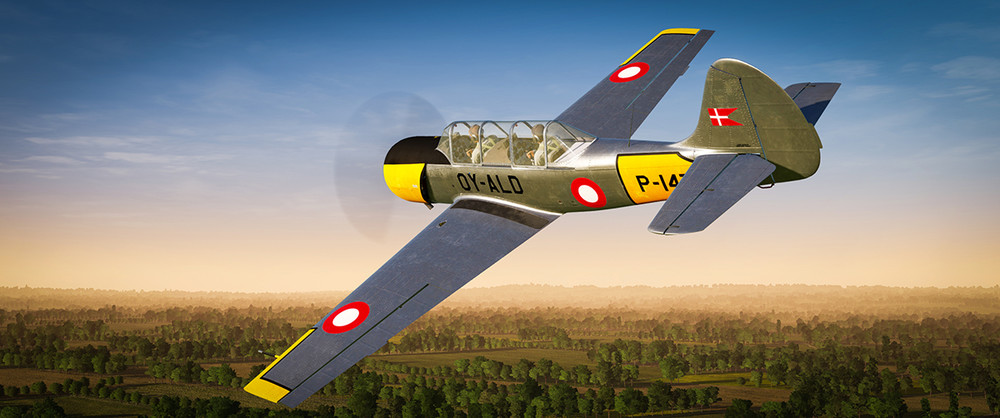 Yak-52 based the Texan T6 (Royal Danish Air Force). Not 100% historically accurate. Here: https://www.digitalcombatsimulator.com/en/files/3309310/