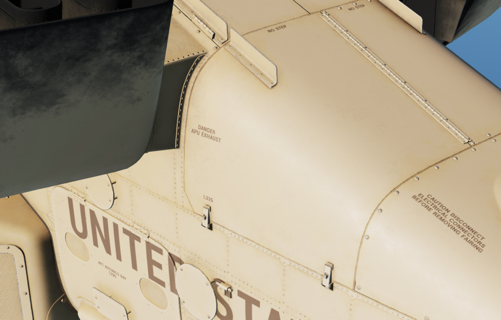 Very minor error, but all the liveries (And paint kit) has the 'Danger APU Exhaust' warning on the wrong side.