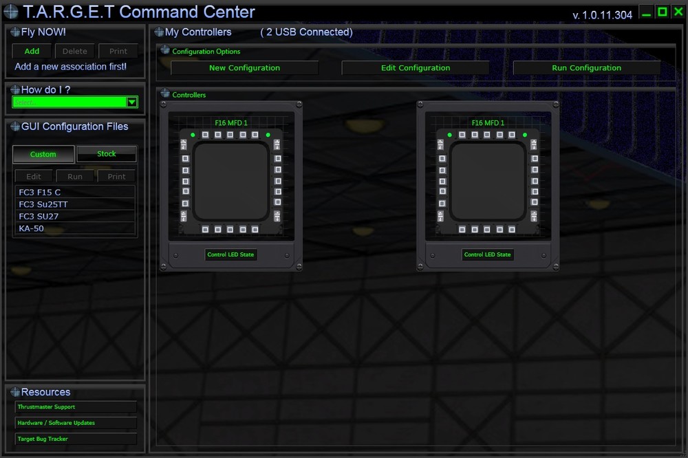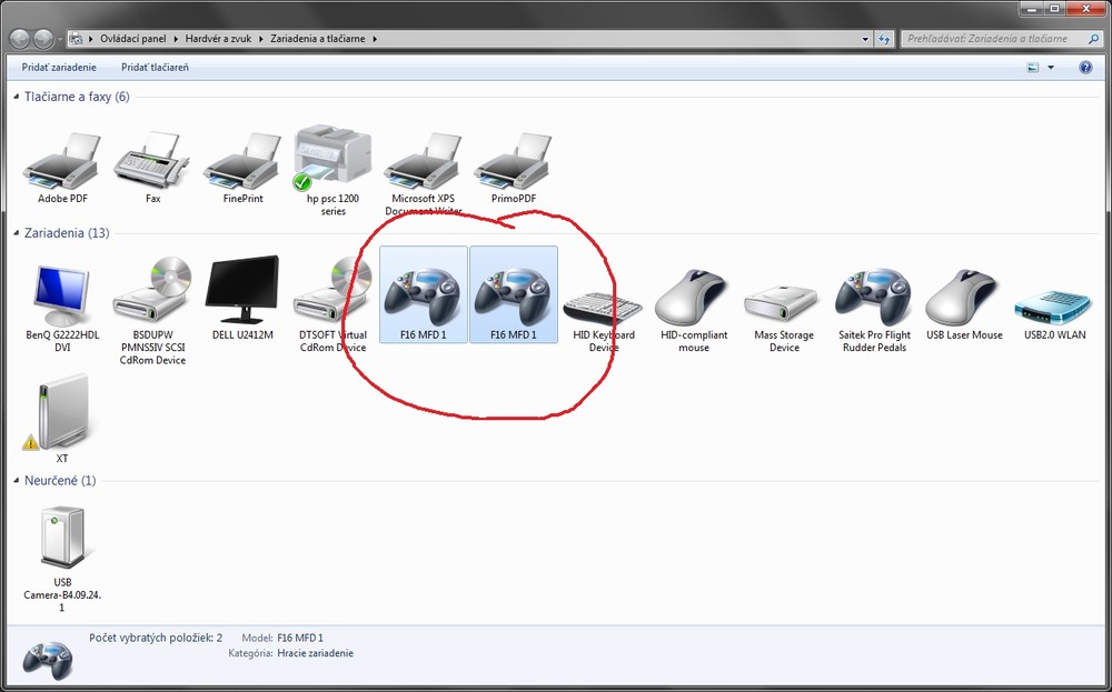 Hello. There is some problem with my two MFD Cougar panels. Yesterday, both of them apear in my control panel with exactly same device name F16 MFD 1. Before I had in my device list always "F16 MFD 1" and "F16 MFD 2". Now I have double "F16 MFD 1". For this reason I can´t use TARGET GUI because both works like left MFD :cry: I try rename it in windows registry, unplug and plug to every USB port, reinstall drivers but nothing help me. In TARGET GUI they have still same device name "F16 MFD 1" and same device id "USB\VID_044F&PID_B351&REV_0100". Edit: Problem solved. Older driver works good for me...