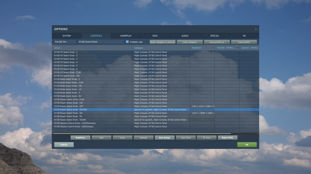 Huh? I know I can use ON and OFF separately, and I did just that in the screen attached, but it takes two bindings instead of one (and occupies two buttons/switch positions on my physical HOTAS). The switch in question - KY58 Power Select does not need to be held in RL. I can bind gear up/down to a single button, but not this switch? Just does not make any sense to me...
