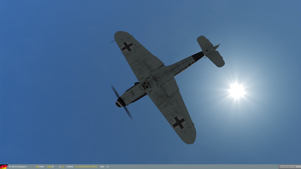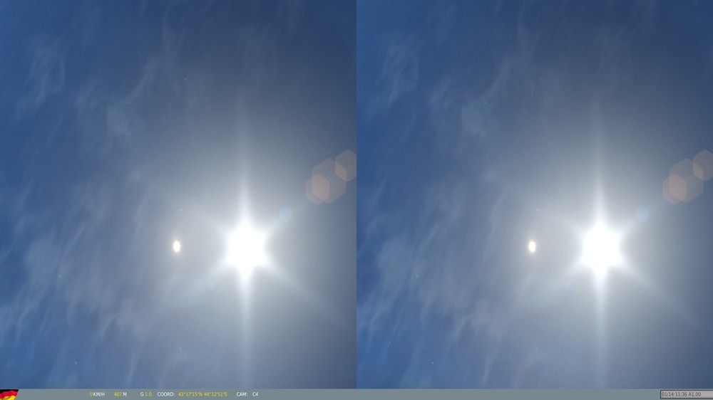 13. Hello. Only noticed them after the latest update (1.2.16.38741). In the summer weather, I can see some dark spots around the sun. They move around, depending on the angle of view. Very disturbing in WW2 multiplayer! I attached two screenshots taken from a paused K-4 Dogfight quick mission. (To be sure it's not the glass - from the external view.)