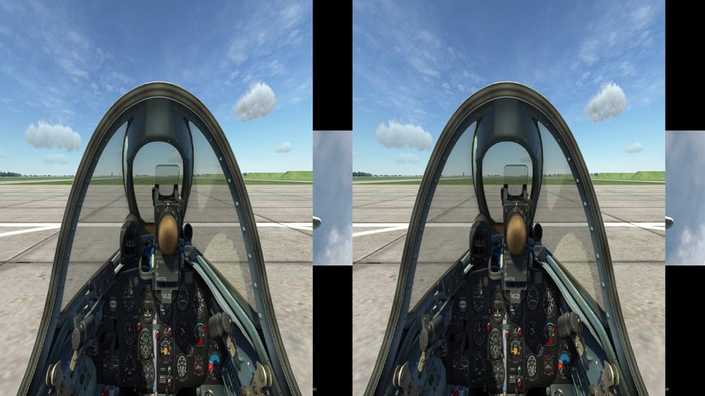 6. Thanks, smoochi! It works, although I don't understand this 0.85 multiplier. In 1.2 I got somewhat better results using TAB, rather than SBS (more horizontal pixels make text in cockpit more readable). I am having a hard time modifying it for 1.5. Could you help? _ = function(p) return p; end; name = _('StereoTAB'); Description = 'Stereo render two viewports for left and right eye respectivelly' Viewports = { Left = { x = 0; y = 0; width = screen.width; height = screen.height * 0.5; viewDx = -0.002; viewDy = 0; aspect = screen.aspect; eye_shift = -0.005; }, Right = { x = 0; y = screen.height * 0.5; width = screen.width; height = screen.height * 0.5; viewDx = 0.002; viewDy = 0; aspect = screen.aspect; eye_shift = 0.005; } }