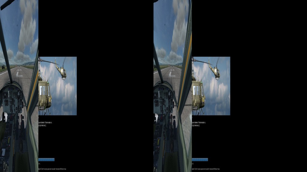 2. Another oddity - not all planes work with this mod! I so far tried BF, Su-25 and Huey - they do, but Mig 21 and MIG 15 don't! So this feature is indeed broken (( And while it does work for Huey, the resulting 3d picture is too wide - wrong aspect ratio!