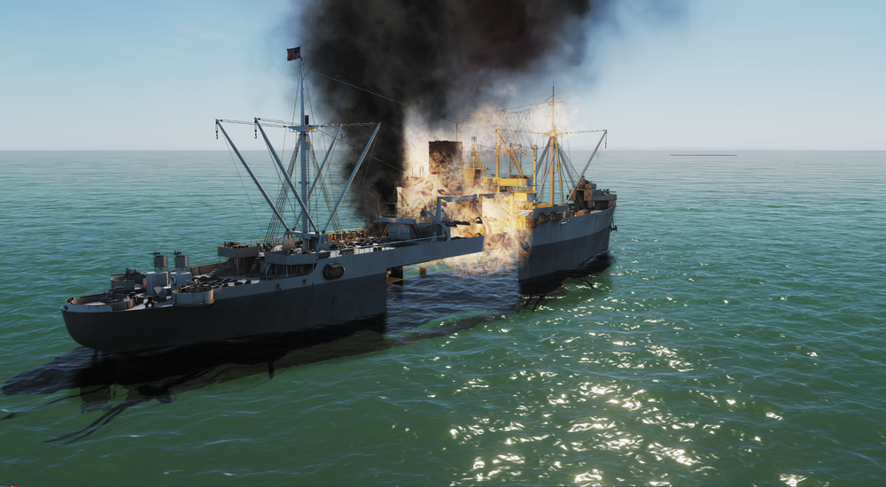 I was using this ship as a stand in for a modern civilian vessel in the Persian gulf map and as the victim of a Silkworm battery, and the "exit wound" looks like this....