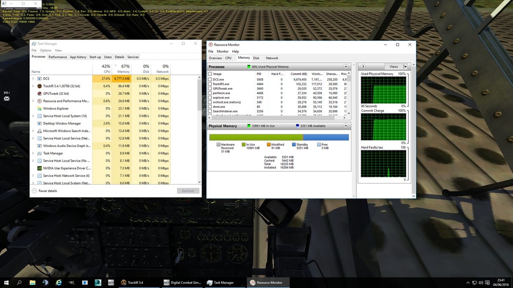 My Video memory usage just keeps going up and up and after 1-1.5 hours of playing online, it hits 18GB (I have 16GB RAM and 2GB VRAM) and my frame half. What could be causing this and is anyone suffering form the same?! I have attached a picture that shows the state of my memory as soon as I entered a server after restarting the PC. It shows 10GB video memory yet in Task Manager, DCS is only using 6GB of RAM. I did some testing in single player and started the M2000 free flight mission, the video memory was 4.5GB. I then left that mission and entered the F-86 Mig Sweep mission and the video memory was 8Gb. I then left this mission and restarted the M2000 free flight mission and this time the video memory was 6.5Gb. Therefore it gain 2Gb as if the Video memory is not being cleaned between missions. Is this normal?? Jacks