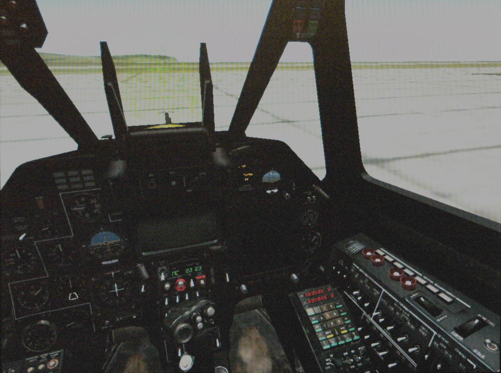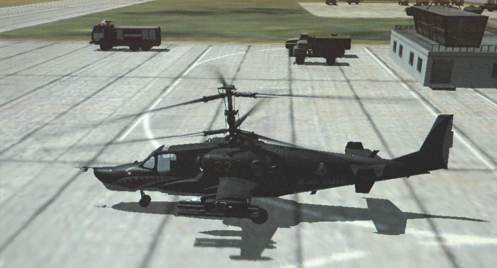 В целом про впечатления. Летает, стреляет. Шасси не убираются (кнопуку G пробовал). Ведет себя в воздухе в целом прилично. Кабина внутри очень симпатичная! Движения лопастей сделаны на твердую пятерку! Выглядят лопасти отлично и внутри, и снаружи. Вихревого кольца не видел - возможно условий не было подходящих. Внешние виды - симпатяга! Ну, это видно по шотам. Имел счастье сравнить модель Ка-50 с выставленным неподалеку оригиналом 8-). Не очень понял с показаниями на ИЛС. Почему-то вся картинка в ИЛС не помещается, и показания все время двигаются. Может быть, "голова" пилота была далеко, или еще что-то. Модель повреждений оценить не получилось. С висения на высоте 5-10 метров убрал газ, относительно плавно упал на правое заднее колесо, сразу получил картинку завершения миссии. Со вздохом вспоминил, как у Су-25Т отваливался радар... Газом управлять достаточно просто, подобрать нужный газ для висения на 5м не вызвало проблем. Кликать внутри ничего не пробовал - звиняйте. Посадить на землю получилось с первого раза, не сложнее Су-25 8-))). Приборы чего-то показывают, все шевелится, лепота! Шквал немного другой, работает. Не знаю, на каком железе "крутилась" дема, но тормозов практически не было, один раз на четверь секунды замерло. По общим ощущениям - идет заметно веселее, чем Су-25Т. Наверное, как доделают - будет не хуже 8-). За соседним компом уставший сотрудник без опознавательных знаков учил 10-летнего малыша летать на Ка-50, достаточно успешно. Форумчане походили 8-), Есть еще снимки кабины внутри, но они очень темные, мутные и разглядеть на них чего-то очень тяжело. Выкладывать не буду, чтобы впечатление не испортить, вживую кабина лучше.
