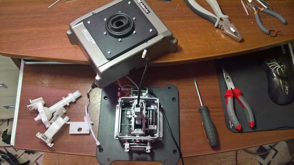 Ну железо-то собраное приехало, я только кобру раскидал, корпус распилил, просверлил и скидал обратно. На самом деле там ничего сложного, если нужный инструмент под рукой. Самое главное преимущество сего конструктора это соотношение цена/качество. Обошлось сие хозяйство 5500 + б/ушная кобра 1500... Какой можно джой купить за эти деньги? И какого уровня он будет, как скоро сдохнет механика пластиковая...