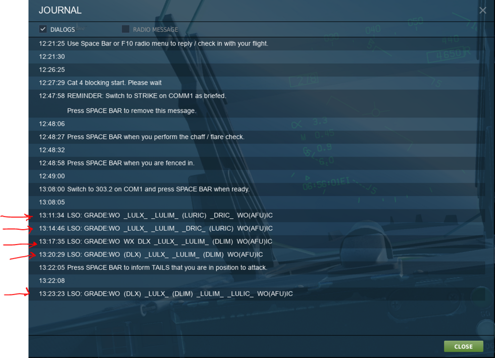 Hello guys. I'm having issues on (I suppose) the end of M07 after downing the helo. Raven 11 and Raven 12 just get stuck in a loop of wave offs when trying to land in the carrier. Attach you have the logs messages. Cheers. - -