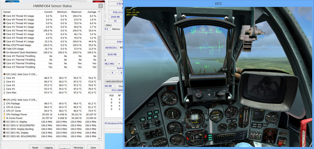 Wait. So, what you're saying is, all the good times I've been having up until recently without stutter and perfectly playable frame rates between 30 - 50 was all just in my head? :doh: BrunoDerRabe, I've been playing DCS for several years now. I can tell you on the lesser system DCS still manages 20 - 35 fps with settings on medium. The newer system usually has anywhere between 30 - 50 fps settings medium/high. And for your information, I've always played at 1920 x 1080. I appreciate you're trying to help. But please don't talk to me like I just arrived at the forum with my first PC bought off the high street. This is a reoccurring stutter I'm talking about. And not low fps due to hardware not keeping up. When the hardware can't keep up, you don't fly around happily for a minute or so at 40 fps and then dump to 9 fps. EDIT: Just did re-test, fresh DCS World install. Instant action Su-25T, ground attack. Very stable between 55 - 60 fps. 1920 x 1080 all setting high apart from visible range and water at medium, AA x 2, HDR off. Occasionally dumps to 13 for a few seconds. And like I said... similar behaviour in v1.1.1.1. That rules out the DCS build. It's not the hardware, since I've been playing on this laptop a year and a half without this. There's only one way to know for sure if it is Windows 8 related and that's a fresh Windows 7 install on the newer system...