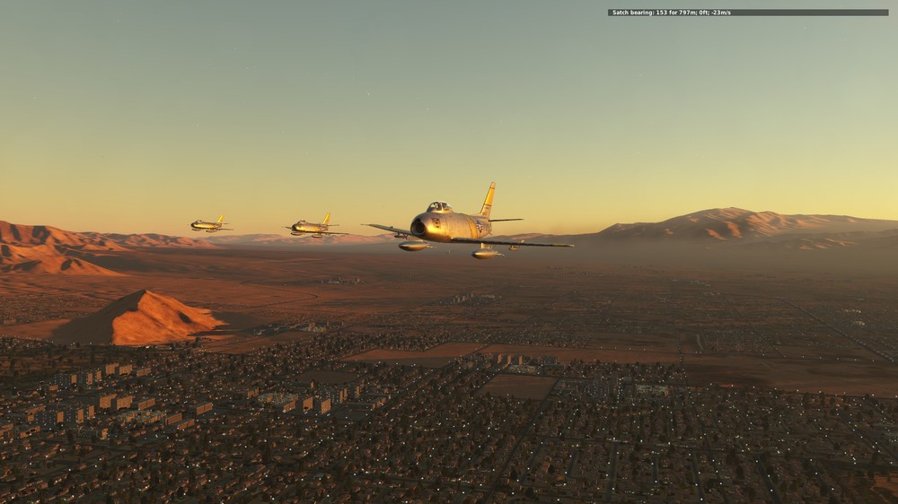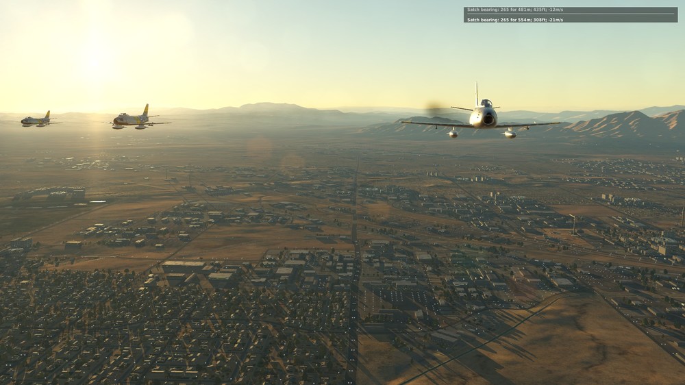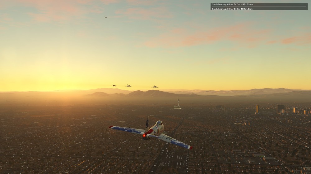 2.1.1 Наконец подобрав летабельные настройки графики для отложенного освещения, мне тоже удалось насладиться новым физически-корректным рендерингом. Несколько кругов над Вегасом в рассветный час - это фантастика! точнее, это невероятно реалистично и натурально и, наверное поэтому так красиво. Просто кружил и с восторгом наблюдал как меняются оттенки с восходом солнца, как начинает "светиться" атмосфера, как отражают свет и ловят блики сабли, вода, стены зданий и т.д и т.п.)))