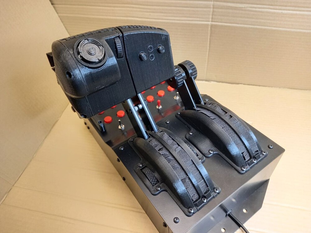 Sorry for the long response, I was very busy. This device works independently of others. It does not use the VIRPIL controller. I haven't used VIRPIL controllers for over two years now. The price of the device is 230 EUR. Delivery to the USA is 90 EUR. The thing is heavy, 90% iron. Arduno based device controller. The MMJoy2 program does not require installation and runs in the background if necessary. Windows is detected automatically. The lever axes are made with TLE sensors, non-contact magnetic. The rotation angle of the levers is 82 degrees. Travel from minimum to maximum 180mm. Hello. Yes, of course, I now have 1 and 3 ready. Device 210 EUR + delivery to UK 60 EUR.