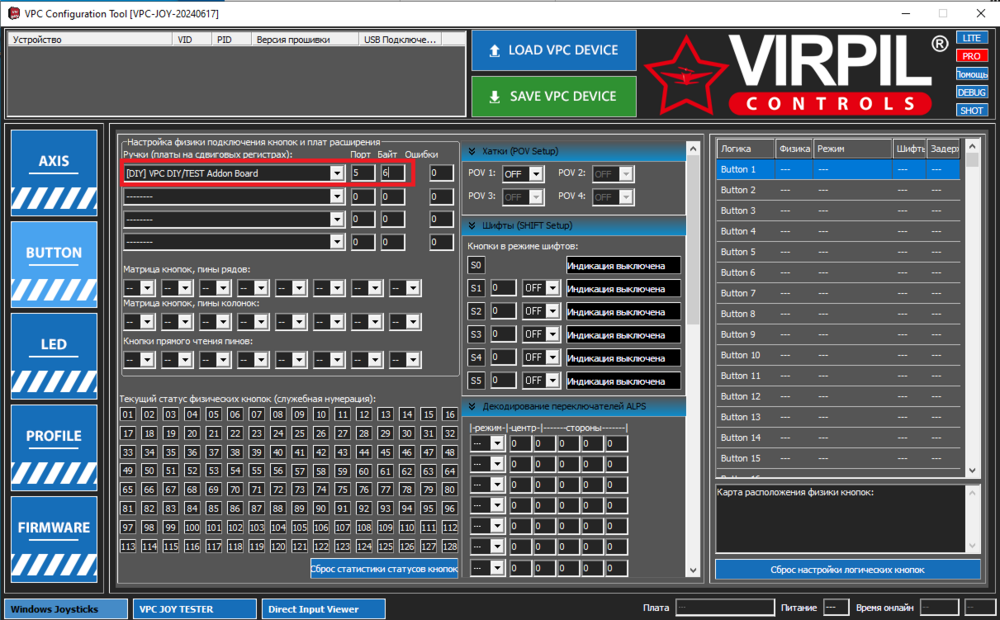 Важное сообщение Для тех кто пользуется моими устройствами на контроллере VPC(DIY.ATMEGA.V01) и хочет перейти на более свежую версию программы VPC Software Setup Version. Что бы это прошло нормально надо сделать несколько шагов. 1. В версии программы который вы пользуетесь включить режим "PRO". 2. Перейти во вкладке "PROFILE" и отредактировать адрес "USB Vendor ID" исправить на 3344. 3. Записать исправление в контроллер нажав "SAVE VPC DEVICE" 4. Сделайте резервную копию профиля сохранив его нужной вам папке нажав экспорт профиля в файл. 5. Теперь закройте программу VPC и удалите ее средствами удаления приложений в Винде (Рекомендую удалять а не ставить по верх новую). 6. Установите новую версию программы, нажмите "PRO", идем во вкладку "FIRMAWERE" и установите новую прошивку контроллера. 7. После установки прошивки контроллера, он должен несколько раз перезагрузиться и автоматически перейти во вкладку "PROFILE". Нажимаем Импорт профиля из файла, находит копию своего профиля, выделяем и нажимаем "Открыть". Обязательно проверьте что бы USB Vendor ID был прописан 3344. Это очень важно!!!!! 8. Записываем профиль в контроллер "SAVE VPC DEVICE". В случае если вы уже попытались сами обновить, но у вас не получилось и устройство перестало видеть программа VPC. Делаем следующее. 1. Удаляем новую версию программы и ставим струю или версию 20230328. 2. В случае если винда перестали видеть устройство или видит его с ошибкой, перезагружаем комп с выдернутым USB от устройства. На плате контроллер находим два контакта с надписью "BOOT", замыкаем эти контакты и подключаем USB к компу, предварительно запустив программу VPC. 3. Программа VPC должна увидеть контроллер с названием VPC "Bootloader" и предложит обновить прошивку контроллера. Делаем это. 4.После прошивки контроллера устанавливаем профиль устройства из сохраненной папки или скачиваем здесь. 5. Выполняем действия 1-8 описанные выше. Профили 2_0617 для РОШ с 3 осями. _К51 для РОШ с 2 осями. Collective_K51.xmlCollective_2_0617.XML Возникнут вопросы пишите в личку. -