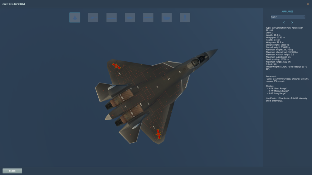 NEXT UPDATE ON SUNDAY 29th UPDATE INCLUDES. # 1 Damage Model Externally and internally including systems( Stage 1) WIP. # 2 Su-57 Fuel Drop Tanks # 3 New Arming Icons For Su-57 drop tanks and R-37 Missiles. # 4 New Skins,VVS,China,Stage 2 Engine Skin and also improved earlier skins as well. Damage model Preview in action