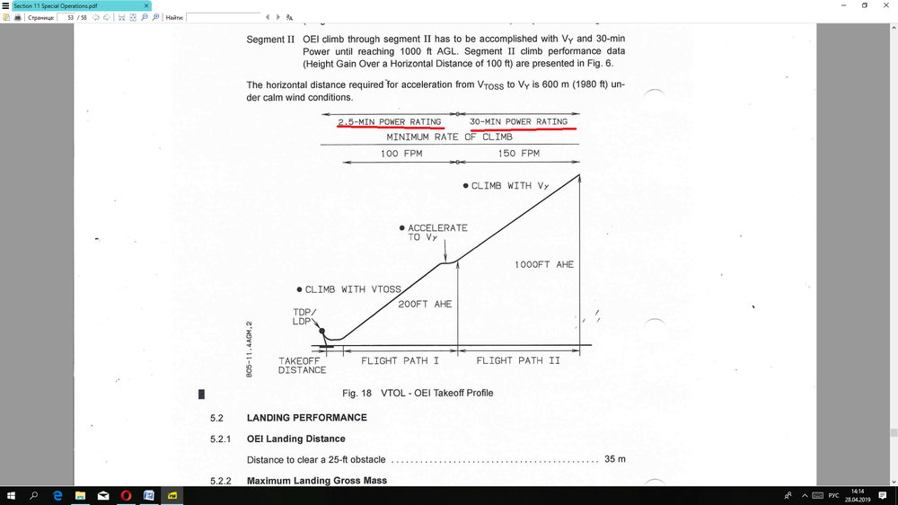 Всем привет! Знаю, что не в правильной теме, но на Во-105 все затихло, строго прошу не судить, что не там, знаю, все удалю. Нужна помощь в понимании термина, найденного в РЛЭ Во-105. [ATTACH]209465[/ATTACH] Если кратко, то при описании профиля взлета указываются режимы двигателей "2,5 min power rating - 30-min power rating". Что это значит - "выдерживать такой-то режим в течение 2,5/30 минут" или "режим установить в 2,5/30 от минимала"? Подскажите кто знает!