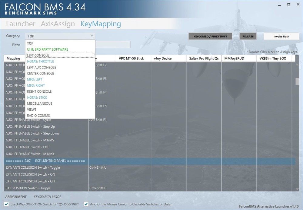 У меня руд кота на ммджое2 и рус VPC с ручкой кота, педали на VKB tiny box. Пользуюсь альтернативным лаунчером - все настраивается шикарно, при отключении/перетыкании устройств кнопки не съезжают. Назначение осей и конопок становится похожим на настройки в DCS.