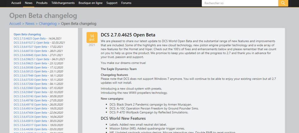 How can we get the changelog ? on the website, the last changelog i have is from april 2021 ? Besides there was an update yesterday but i can't recall my DCS updating null
