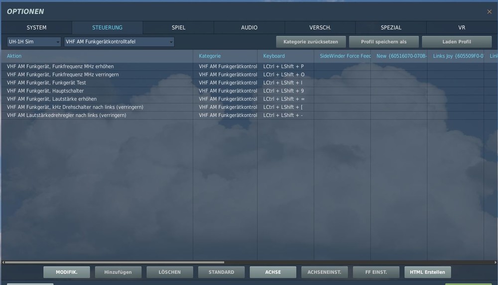 13. Hallo Leute, Ich hab das Problem das in der Deutschen DCS Version in den Steuerungen für das VHF der kHz Drehschalter nur zum verringern vorhanden ist! Leider aber nicht zum erhöhen der Frequenz. InGame funktioniert die tasten Kombi zum erhöhen der Frequenz, aber leider kann ich keinen Drehregler darauf binden! Das ist jetzt aber nicht neu, also hat auch nichts mit einen der letzten Updates zu tun! Es ist auch egal welche DCS Version, also 1.5 oder 2.1. Die Option ist einfach nicht da. In den Englischen Version gibt es aber diese Einstellung zum erhöhen der kHz Frequenz, muss also in der Übersetzung was schief gegangen sein! Hat da jemand von euch eine Idee wie ich das lösen kann ausser die Englische Version zu installieren? Danke schon mal an alle