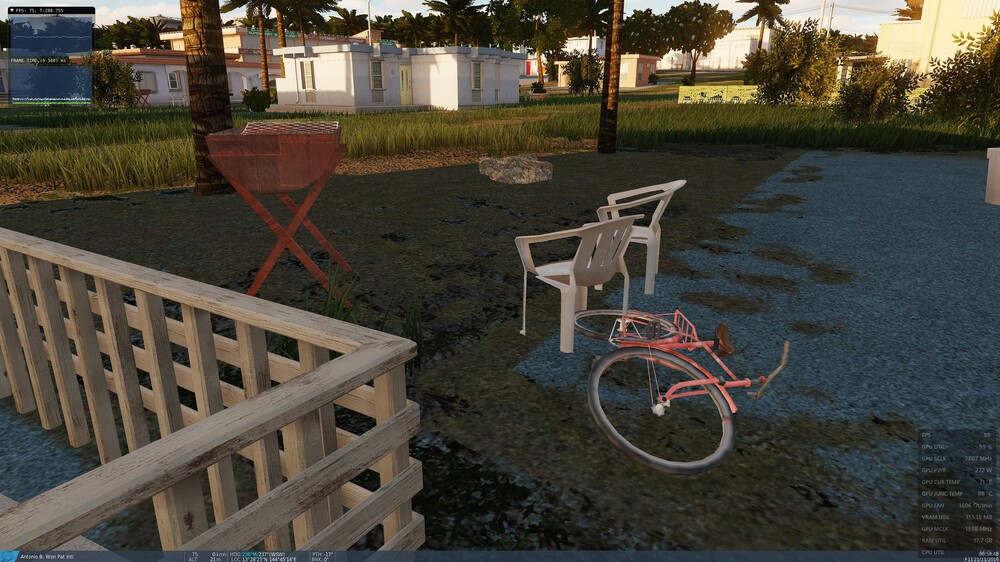 Marianas map is great with all its details, thanks DCS for it. I took a short morning walk in the area you mention, I also looked at the lying bike. FPS score (75 in DCS counter / 88 in AMD performance tab) seems to be pretty good for me there - see the attached screenshot.
