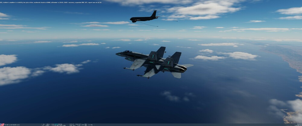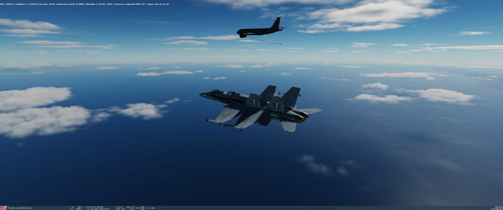 All tankers: the tankers navigation lights are off until the player who called intent to refuel is within .5nm. This makes it very difficult to close with the tanker, it would make a lot more sense if the tankers were either always running with their navigation lights on at night or turned them on at a greater distance, say 2nm. KC135 specific: The line up lights are switched off the instant you get the transfer complete call. I'm talking about the fore-aft and vertical alignment lights, meaning once you get transfer complete you are suddenly staring into blackness where there is a giant aircraft that you cannot see. This is not reasonable, these lights should remain on at least until the refueling aircraft is clear.