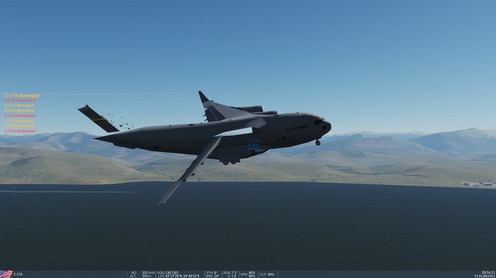 The above track still replayable (2.5.4.29167) to the first forced repair, which is started because the lost canopy and repaired the 3 blown tyres but not visually. -
