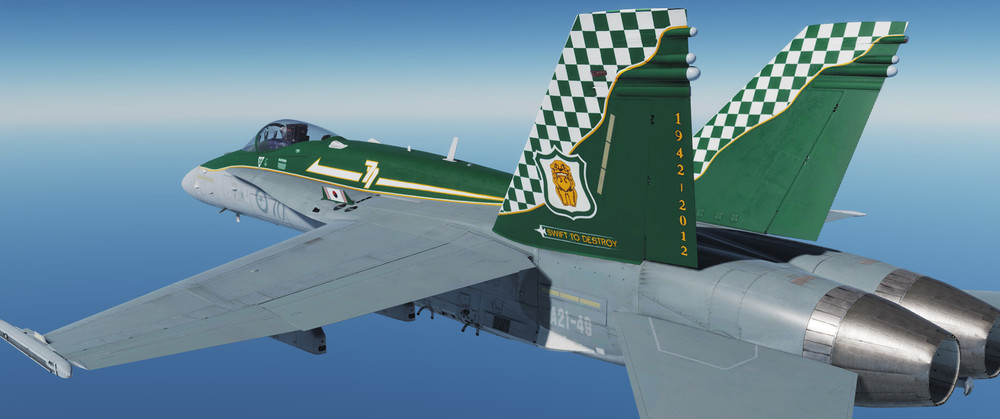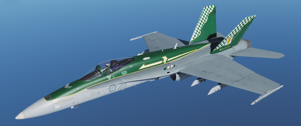 12/08/2018 - Release of RAAF Pack 2.0 - 3SQN A21-17 https://www.digitalcombatsimulator.com/en/files/3301625/ A21-17 appears as it did in June 2017. This low visibility scheme is indicative of any 2010’s 3 Sqn Hornet, and represents the final year of the Hornet in 3 Sqn service, before the remaining aircraft were transferred to 77 Sqn to make way for the F-35A. The tail displays the 3 Sqn eagle carrying a bomb logo, with the Southern Cross backdrop, modernised from the mid 2000’s to have a more defined appearance. The fuselage arrows are inverted in colour, with the 3 Sqn eagle crest as the centre-point. Many of the panels have been repainted and show varying amounts of paint fade. There are minimal fluid deposits on the wings and tail. The most notable element is the anti-slip surface on the leading edge extensions, which is inverted from its usual black or faded gray appearance. 27/07/2018 - Release of RAAF Pack 2.0 - 77 SQN A21-49 70th Anniversary https://www.digitalcombatsimulator.com/en/files/3301363/ A21-49 appears as it did between January 2012 and February 2013, where it featured at the Australian International Airshow at Avalon in Victoria. In 2011, members from No. 77 SQN were asked to come up with a design to be painted on a Hornet to coincide with the Squadrons 70th Anniversary celebrations. The scheme was designed by 77 SQN personnel, LAC Nicholas Pearsall, CPL Aaron Somerville and SGT Chris Henderson. The scheme has several key features built around the 77 SQN FS-14062 satin green base. On the vertical stabilisers we see the 77 SQN “grumpy monkey” accompanied by the squadron motto “swift to destroy” with the hornet silhouette. The checkerboard pattern is reflective of the green and white checkerboard pattern seen on earlier 77 SQN schemes, including Gloster Meteor aircraft deployed to Korea, as well as Sabre and Mirage III fighters. On the left side of the nose, there is a placard listing the Battle Honours for 77 SQN, from the Second World War, through to Korea. Less prominent, is the inverted (white) warning signage around the cockpit. It is worth noting that despite the high visibility commemorative paintwork, the majority of the aircraft is still painted in the 77 SQN low visibility scheme, including roundels, and darkened formation lights on the nose. During the lifetime of this scheme, various panels were repainted FS35237 or FS36375, notably around the nose. 27/06/2018 - Release of RAAF Pack 2.0 - Test & Training https://www.digitalcombatsimulator.com/en/files/1994272/ Test & Training is the first release of the F/A-18 Hornet RAAF Pack 2.0. I will be adding more skins to the F/A-18 Hornet RAAF Pack 2.0 as time permits. Currently in the pipeline are a some demonstration skins, celebrating different milestones in Hornet and Squadron history. As skins are nearing completion, I will post screenshots. Test & Training is intended to support the recent release of the DCS F/A-18C Hornet module. At this stage, most of us are involved in learning the systems and trying not to crash! - a test and training pack seemed the most appropriate choice for this point in time. This release includes three RAAF F/A-18A airframes: A21-32, 2002, ARDU test livery A21-25, 2017, 2OCU high visibility training livery A21-28, 2008, 2OCU low visibility training livery Please see the guide included in the download package for installation notes, and more information on each of the included aircraft. Be sure to inform me of any issues you discover so I can amend them. Thanks for your continued support! Hugh