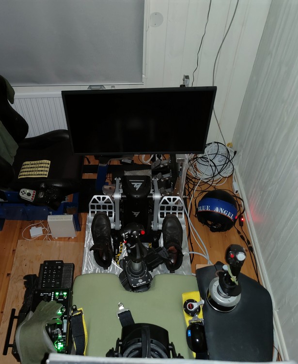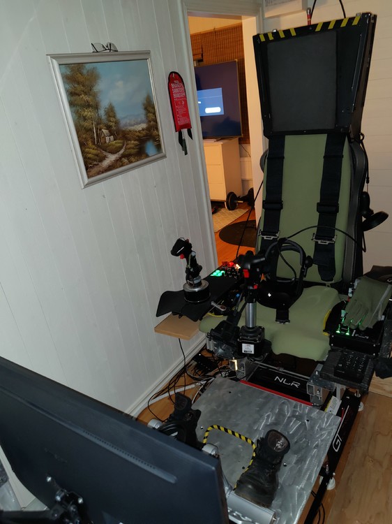 It's been lying pretty well this far actually. I'm a tiny guy around 70 kilograms, and the V3 can handle up to 130 kilograms of wight in total. It's mostly built in aluminium and some light weight wood materials. I'm still tweaking it a bit and now it's been a while since flying. I also have some new Winwing take off and combat panels coming up. Installing those and then, hopefully my newly operated kne will be fit for flight as well again I'll be putting up more outside view videos in the future on my YouTube -