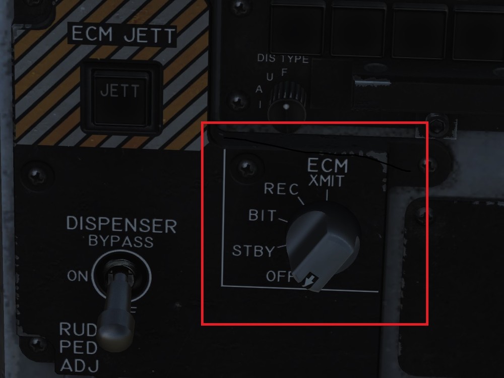 I believe a lot of misunderstanding stems from in the “controls” settings there are 2 switches named “dispenser” switch. One moves fwd and aft as discussed on page 61(see below). The other “dispenser” switch on page 173 (see below) is also a 3 position switch, up and down. It should IMHO be called the “dispenser mode switch). Positions are off, on and bypass. Functions as noted below. Fig 24 pg 61 Dispense Switch, AFT – OFF – FWD. This three-way switch allows manual and semi-automatic use of the ALE-47 countermeasure system. • Forward [E]. Start EW countermeasure program. Each press of the switch will initiate the program set on the EW page. • Center. No function. • Aft [D]. Dispense single chaff / flare in manual mode. Fig 173 Pg295 Dispenser Mode Select Switch. This switch has three positions: • OFF: Turns the CMDS power off and ALE-47 legend on the EW page has an X through it. However, the ECM JETT button will still function. • BYPASS. This selection bypasses the countermeasure programmer and will release a single chaff or single flare based on the HOTAS countermeasure release command. When set to bypass, the ALE-47 indication on the DDI EW page will have a dash through it and the EW page BIT element will indicate NOT RDY ON: When set to on, there is a five second warm up period and a BIT is conducted. After five seconds, it is ready for operation. When in ON mode, the release modes of STBY, MAN, SEMI, and AUTO can be selected. o When first set to ON, SF TEST will appear for five seconds below the EW legends on the DDI EW page. After which, PBIT GO will be displayed for ten seconds. Once that is complete, OFF or the selected mode will be displayed.