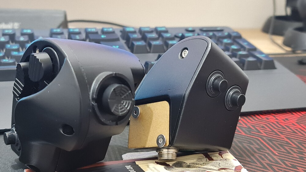От себя скажу следующее. Могу сравнивать только с thrustmaster warthog и остальными Х-сами Устройство очень интересное . Собрано всё качественно (внутри не смотрел =)), но есть обзоры на его кишки, тав всё достойно. Главные оси управления тягой и две остальные, в сравнении с Трастмастером, очень чёткие, плотные что ли, нет этой разболтанности . Кнюппеля и и кнопки менее жёсткие, совсем немного., но с чётких понимаем нажатия. Кнопки на правом рычаге тяги, так вообще божественно переключаются. после них переключатели на thrustmaster warthog кажутся унылыми. Я вот об этих.