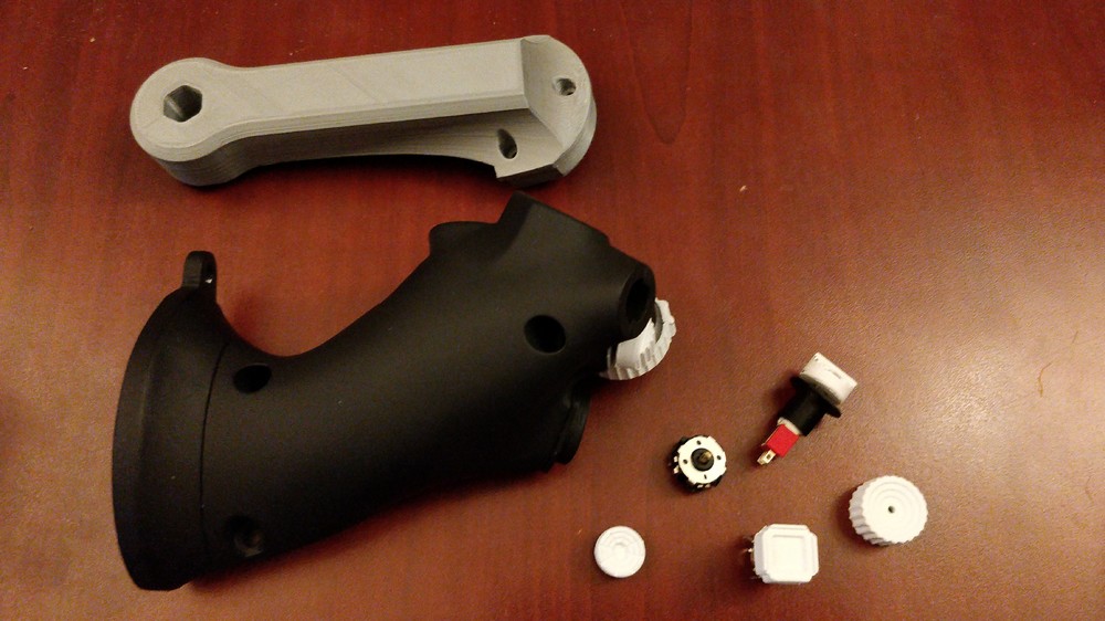 Hey guys, I've always thought the F-16's throttle quadrant system was the coolest looking throttle. So when my brother offered to 3D print some parts for me I knew what I wanted to do right off the bat. I found this model from a nice guy on seedling. http://www.seedling.org/The_Official_Hempstick_Site/F16_Throttle.html I modified a few of the toggle switch mounts as well as designed a new MIC switch. Modelled a new mount for it as well as a full mounting system and friction block. I also wanted a few more functions on my TQS. First and foremost I'm sick of taking my hand off the stick to use the mouse, it sucks. I searched high and low for any information on the IBM trackpoints, you know the little nubbin mouse you find on thinkpads? Hens teeth. Can't find any information about them anywhere so I had to give up on the trackpoints. Luckily our favorite fruit flavored phone existed. I was able to buy a trackball mouse from Pimoroni and it runs on I2C. I've been able to hook it up to an Arduino and get the two communicating. More work is needed on it though. Hopefully I'll be able to have a nice useable mouse. The next modification is to the manual range knob. I wanted another hat on my stick so I found the coolest little device. It's an encoder, a 4 way directional hat and a push button all in one. If you look close at the range knob you can see I added an indentation. This will help me to actuate the hat switch. The last modification I made is the dedicated modifier key. I'm a big fan of modifiers in DCS so I added a toggle switch in place of the pinky switch for the afterburner. Though its not in any of the pictures. Below you can see what primer sanding and paint can do to a 3d print. Next is the mounting mechanism, friction block, and pot gearing. The friction block will have greased leather as a friction pad. There's also a stop build into it. The gearing allows me to use a 270 degree pot to get good detail out of the rotation. Could've used a hall sensor but, didn't. I'm pleased with how the finish turned out, must've been 4-5 coats of black enamel paint. Next up is the long process of wiring the thing. Should be fun.