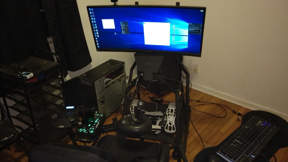 I blame the developers of flight sims, ED included, for the charred holes in my pockets. And the player base for having cool pictures of all their setups. My list of products since jumping into the genre- Saitek X52 Pro - tried to take the throttle unit apart to clean pots and plastic came with the screws - no longer functioning.. owned maybe 2-3 years and didn't use very often. Saitek Proflight rudder pedals - somehow managed to snap the right pedal off. (I think I stretched one night with my feet in them..oops) TrackIR 5 - I've purchased 2 of their trackclip pro's, both broke, had 2 sent to me for free, both broke. Got a Delanclip and it never sat right on the surface of my not so flat headsets, so I ended up with a Luke clip. TM Warthog - slight stiction out of the box. But love the amount of buttons - It's my go to for the a-10c, and any of the FC3 jets and Falcon BMS. But I needed pedals so in the meantime - for helos and propplanes I bought -Logitech Extreme 3d Pro - an excellent joystick that you probably won't feel bad if the need to replace it arises because its cheap as heck. 9/10 recommended MFG Crosswinds - the waiting list for which caused my need for the logitech stick... but so very worth it in the long run. Looking at Milan's website it seems he produces them faster these days. 10/10 recommended. Very smooth.. very solid construction.. velcro or mounting solution recommended. Can be tipped if only one foot. Acer Predator x34 - while three screens would've given more screen surface, I decided for a single 34" screen at 3440x1440 and am not displeased with the decision. My system seems to handle this resolution rather well, and takes advantage of the higher refresh rates. It also has better picture and color quality than my older 27" Asus monitor @1080p. Microsoft Sidewinder Force Feedback 2 - bought a used one off Ebay with obvious signs of use..but still working strong.. completely replaced the Logitech.. I use it with all wwI, wwII, and helo simming. My ability to fly the Ka-50 increased rather dramatically with this stick. I purchased a second one of these listed as unused, and seemed to be the case when I got it. It's in the closet "Just in case" as these have been out of production for a very long time. As a result I've not been flying jets and the a-10c as often ( I still use the hog for that) Obutto R3volution - man..did this hurt the wallet. it's currently being shipped. Switching from hog to msffb2, and having access to my keyboard, mouse, g13 Is just NOT working for me with my desk. I Built a makeshift stick/throttle/pedal mount out of plywood and some ikea tables but it's not very ergonomic and my body has taken enough abuse to notice. I got the warthog mount and the non warthog stick/throttle mount adapter to give myself more options for keeping both sticks I use nearby for when I feel like switching them out without having to put them on the floor, or maybe even build a place to store them on a nearby wall by just dropping them in a tube. This is going to replace my desk entirely and take less space. You'd think I'd be done.. but.. I still have a couple items I'd like to add..such as a touchscreen for cockpit displays and functions..and I'm kind of drooling over the thought of adapting my warthog stick to a VKB Gunfighter base, as that cam design seems like it would have a beautiful feel, at the same time however I may just mod one of my msffb2's to have a grip similar to the f-16/a-10c and the stick part of the hog will gather dust. I also wouldn't mind picking up a CH Throttle quadrant for more axis to bind things too. By this point I hope to be done sinking money into flight sim peripherals 0.o