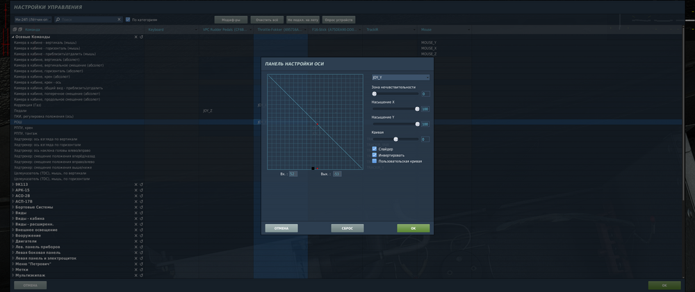 Настроить соответствующие оси в осевых командах для "летчика оператора ", они отдельны от команд для "летчика", у тебя скорее всего они настроены не одинаково, и за РОШ у оператора отвечает другая ось. И не задавать один и тот же вопрос в разных темах, тут три калеки на форуме и так увидят твои страдания