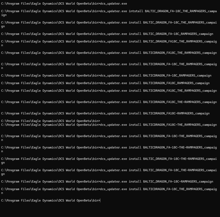Basically what the title says, purchased, paid, receipt received, no module, not showing in launcher, not showing in game, attempting to guess the module ID so i can DL via CMD, but that aint working either. ID's i have tried: null all not working...wanna help me out? 00000.153 --- Log file: C:\Program Files\Eagle Dynamics\DCS World OpenBeta\autoupdate_log.txt 00000.000 === Log opened UTC 2025-03-20 03:16:47 00000.024 INFO : DCS_Updater/2.17.3.11 (Windows NT 10.0.26100; Win64; en-US) 00000.025 INFO : src-id: 9b8ee0590e8fa6db99ff8a8f75512059145d26e1, lib-id: b88ea51ae2210987a3865f77cc1802548216d7a8 00000.026 INFO : cmdline: "C:\Program Files\Eagle Dynamics\DCS World OpenBeta\bin\DCS_updater.exe" apply 89933d51-9f98-4edb-8596-1916a1b2c0ec 148980 00000.078 STATUS: Initializing... 00000.138 INFO : basedir: C:\Program Files\Eagle Dynamics\DCS World OpenBeta 00000.139 INFO : variant: openbeta 00000.142 INFO : Command: repair 00000.153 INFO : DCS/2.9.14.8222 (x86_64; EN; WORLD,CAUCASUS_terrain,MARIANAISLANDS_terrain,A-10C,A-10C_2,A10C-PIERCING_FURY_campaign,A10C-REDFLAG_campaign,A10C-STONE_SHIELD_campaign,AERGES_MIRAGE-F1,AH-64D,AJS37,AVIODEV_C-101,BALTICDRAGON_A10C-ENEMY_WITHIN_3_campaign,BALTICDRAGON_FA-18C_RAVEN_ONE_DOMINANT_FURY_campaign,BALTICDRAGON_FA18C_RAVEN_ONE_campaign,BALTICDRAGON_M2000C-REDFLAG_campaign,BF-109K4,CA,DEKA_JF-17,F-16C,F-5E,F-86F,FA-18C,FW-190D9,HEATBLUR_F-14,KA-50,KA-50_3,L-39,MI-24P,MI-8MTV2,MIG-15BIS,MIG-21BIS,NEVADA_terrain,NORMANDY_terrain,P-51D,P47D30,P51D-HIGHSTAKES_campaign,PERSIANGULF_terrain,POLYCHOPSIM_SA342,RAZBAM_AV8BNA,RAZBAM_M-2000C,RAZBAM_MIG19P,SPITFIRE-MKIX,SPITFIRE-MKIX-OPERATIONEPSOM_campaign,SUPERCARRIER,SYRIA_terrain,WWII-ARMOUR,RAZBAM_F-15E,SINAIMAP_terrain,HEATBLUR_F-4E,A-10A,SU-25A,F-15C,MIG-29,SU-27,SU-33) 00000.153 INFO : branch: openbeta 00000.154 STATUS: Downloading version info... 00000.609 INFO : Showing the repair mode dialog 00007.889 STATUS: Verifying installed files... 00022.215 INFO : 0 files are changed or missing. 00023.607 STATUS: Preparing download... 00023.608 STATUS: Checking downloads... 00023.610 STATUS: Scanning existing files... 00023.610 INFO : To download: 0 bytes in 0 files 00023.611 STATUS: Searching for local copies... 00023.612 INFO : Found 0 local source(s). 00023.612 INFO : To download: 0 bytes in 0 files 00023.674 STATUS: Removing obsolete files... 00023.885 INFO : Removed 0 files. 00024.331 INFO : Kept 115016 files. 00024.331 INFO : Nothing to install. 00024.355 STATUS: Installing runtimes... 00024.673 INFO : distr/vc_redist.x64.exe succeeded with code 1638 00024.680 STATUS: Cleaning up... 00025.056 STATUS: Successfully repaired version 2.9.14.8222@openbeta 00027.581 === Log closed. 00000.000 === Log opened UTC 2025-03-20 03:32:17 00000.025 INFO : DCS_Updater/2.17.3.11 (Windows NT 10.0.26100; Win64; en-US) 00000.025 INFO : src-id: 9b8ee0590e8fa6db99ff8a8f75512059145d26e1, lib-id: b88ea51ae2210987a3865f77cc1802548216d7a8 00000.027 INFO : cmdline: "C:\Program Files\Eagle Dynamics\DCS World OpenBeta\bin\DCS_updater.exe" apply b94d67ba-a705-4a39-85d5-3a2fc151055f 149212 00000.078 STATUS: Initializing... 00000.138 INFO : basedir: C:\Program Files\Eagle Dynamics\DCS World OpenBeta\ 00000.138 INFO : variant: openbeta 00000.141 INFO : Command: install BALTIC_DRAGON_FA-18C_THE_RAMPAGERS_campaign 00000.141 INFO : DCS/2.9.14.8222 (x86_64; EN; WORLD,CAUCASUS_terrain,MARIANAISLANDS_terrain,A-10C,A-10C_2,A10C-PIERCING_FURY_campaign,A10C-REDFLAG_campaign,A10C-STONE_SHIELD_campaign,AERGES_MIRAGE-F1,AH-64D,AJS37,AVIODEV_C-101,BALTICDRAGON_A10C-ENEMY_WITHIN_3_campaign,BALTICDRAGON_FA-18C_RAVEN_ONE_DOMINANT_FURY_campaign,BALTICDRAGON_FA18C_RAVEN_ONE_campaign,BALTICDRAGON_M2000C-REDFLAG_campaign,BF-109K4,CA,DEKA_JF-17,F-16C,F-5E,F-86F,FA-18C,FW-190D9,HEATBLUR_F-14,KA-50,KA-50_3,L-39,MI-24P,MI-8MTV2,MIG-15BIS,MIG-21BIS,NEVADA_terrain,NORMANDY_terrain,P-51D,P47D30,P51D-HIGHSTAKES_campaign,PERSIANGULF_terrain,POLYCHOPSIM_SA342,RAZBAM_AV8BNA,RAZBAM_M-2000C,RAZBAM_MIG19P,SPITFIRE-MKIX,SPITFIRE-MKIX-OPERATIONEPSOM_campaign,SUPERCARRIER,SYRIA_terrain,WWII-ARMOUR,RAZBAM_F-15E,SINAIMAP_terrain,HEATBLUR_F-4E,A-10A,SU-25A,F-15C,MIG-29,SU-27,SU-33) 00000.141 INFO : branch: openbeta 00000.142 STATUS: Downloading version info... 00000.338 STATUS: Preparing to install BALTIC_DRAGON_FA-18C_THE_RAMPAGERS_campaign ... 00000.341 STATUS: Unknown module BALTIC_DRAGON_FA-18C_THE_RAMPAGERS_campaign 00005.282 === Log closed. 00000.000 === Log opened UTC 2025-03-20 03:35:41 00000.024 INFO : DCS_Updater/2.17.3.11 (Windows NT 10.0.26100; Win64; en-US) 00000.024 INFO : src-id: 9b8ee0590e8fa6db99ff8a8f75512059145d26e1, lib-id: b88ea51ae2210987a3865f77cc1802548216d7a8 00000.026 INFO : cmdline: "C:\Program Files\Eagle Dynamics\DCS World OpenBeta\bin\DCS_updater.exe" apply 93da5f3a-c1f5-4894-898d-48dca136ed25 152360 00000.078 STATUS: Initializing... 00000.137 INFO : basedir: C:\Program Files\Eagle Dynamics\DCS World OpenBeta\ 00000.137 INFO : variant: openbeta 00000.140 INFO : Command: install BALTIC_DRAGON_FA-18C_RAMPAGERS_campaign 00000.141 INFO : DCS/2.9.14.8222 (x86_64; EN; WORLD,CAUCASUS_terrain,MARIANAISLANDS_terrain,A-10C,A-10C_2,A10C-PIERCING_FURY_campaign,A10C-REDFLAG_campaign,A10C-STONE_SHIELD_campaign,AERGES_MIRAGE-F1,AH-64D,AJS37,AVIODEV_C-101,BALTICDRAGON_A10C-ENEMY_WITHIN_3_campaign,BALTICDRAGON_FA-18C_RAVEN_ONE_DOMINANT_FURY_campaign,BALTICDRAGON_FA18C_RAVEN_ONE_campaign,BALTICDRAGON_M2000C-REDFLAG_campaign,BF-109K4,CA,DEKA_JF-17,F-16C,F-5E,F-86F,FA-18C,FW-190D9,HEATBLUR_F-14,KA-50,KA-50_3,L-39,MI-24P,MI-8MTV2,MIG-15BIS,MIG-21BIS,NEVADA_terrain,NORMANDY_terrain,P-51D,P47D30,P51D-HIGHSTAKES_campaign,PERSIANGULF_terrain,POLYCHOPSIM_SA342,RAZBAM_AV8BNA,RAZBAM_M-2000C,RAZBAM_MIG19P,SPITFIRE-MKIX,SPITFIRE-MKIX-OPERATIONEPSOM_campaign,SUPERCARRIER,SYRIA_terrain,WWII-ARMOUR,RAZBAM_F-15E,SINAIMAP_terrain,HEATBLUR_F-4E,A-10A,SU-25A,F-15C,MIG-29,SU-27,SU-33) 00000.141 INFO : branch: openbeta 00000.142 STATUS: Downloading version info... 00000.327 STATUS: Prepar