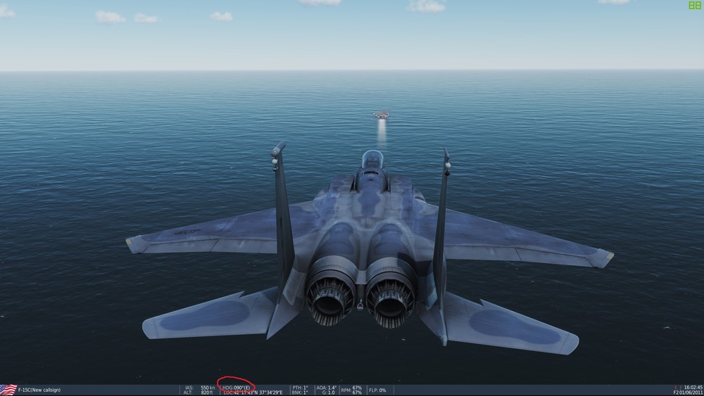 Not sure if this is a bug or working as intended. So I've made a mission in the editor to practice my Case I recovery on the Black Sea map. I set the Carrier to go on an East ( 90degrees) course. But I found that if I set my BRC to 90 degrees i'm about 6 degrees off. Witch is roughly the magnetic declination for this area. I then repeated the experiment with the exact same mission but this time with the F-15C and foud out that this time the heading of the plane correspond to the heading of the ship. Both pictures for both aircrafts were taken in active pause so the planes did not move between the outside and cockpit view. If the plane uses the magnetic north, Shouldn't the boat use it as well? Is the bug on the F-15C for not pointing the magnetic north?
