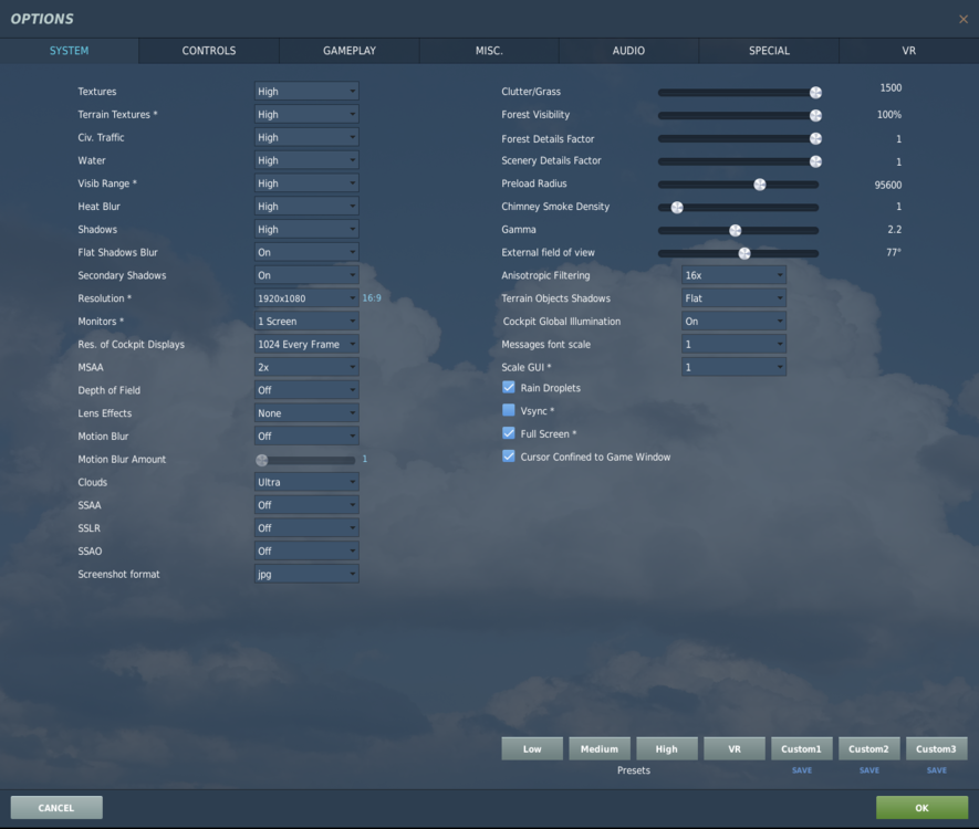 nullUpgraded to a 7590x3d over the weekend. Paired it with a 4090 but only running 4800MT C40 ram. Will upgrade it at some point. That said, I can get stable/constant 72fps with a Quest 2 with the following settings. ASW is disabled. Infact, enabling ASW gives you a noticeable judder as textures go screwy from time to time in its attempt to provide smooth frame rates. The mission I've been using is Ready on the Ramp with the Hornet on PG map. I can take off and hit downtown at low level over a lot of polys/buildings and it's rock steady at 72fps. I may get the very occasional dip to 71fps where there's a very slight pause but overall it's pretty impressive. The only real noticeable popup is the grass where it just appears. Is there is any way to double or triple the draw distance? null -