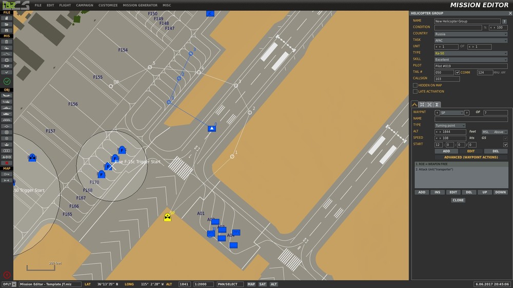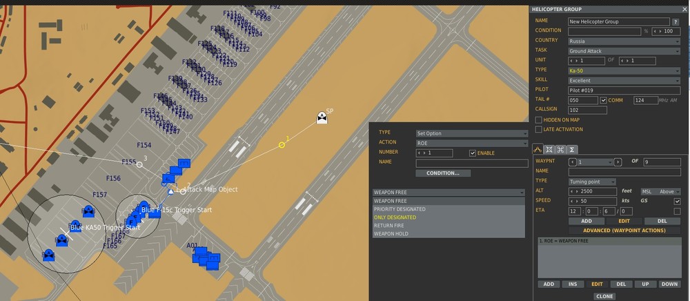 ok so I must be missing something as it didn't work. The enemy pilot (KA50) just flies right out of the base regardless, and doesn't attack Here's the video of it, and attached is the mission editor flight path and attack order, as well as the latest mission editor file (DCS 2.0) https://youtu.be/IsjwV5-JJi8 Jeff Mission Editor - Template JT 20170606.miz